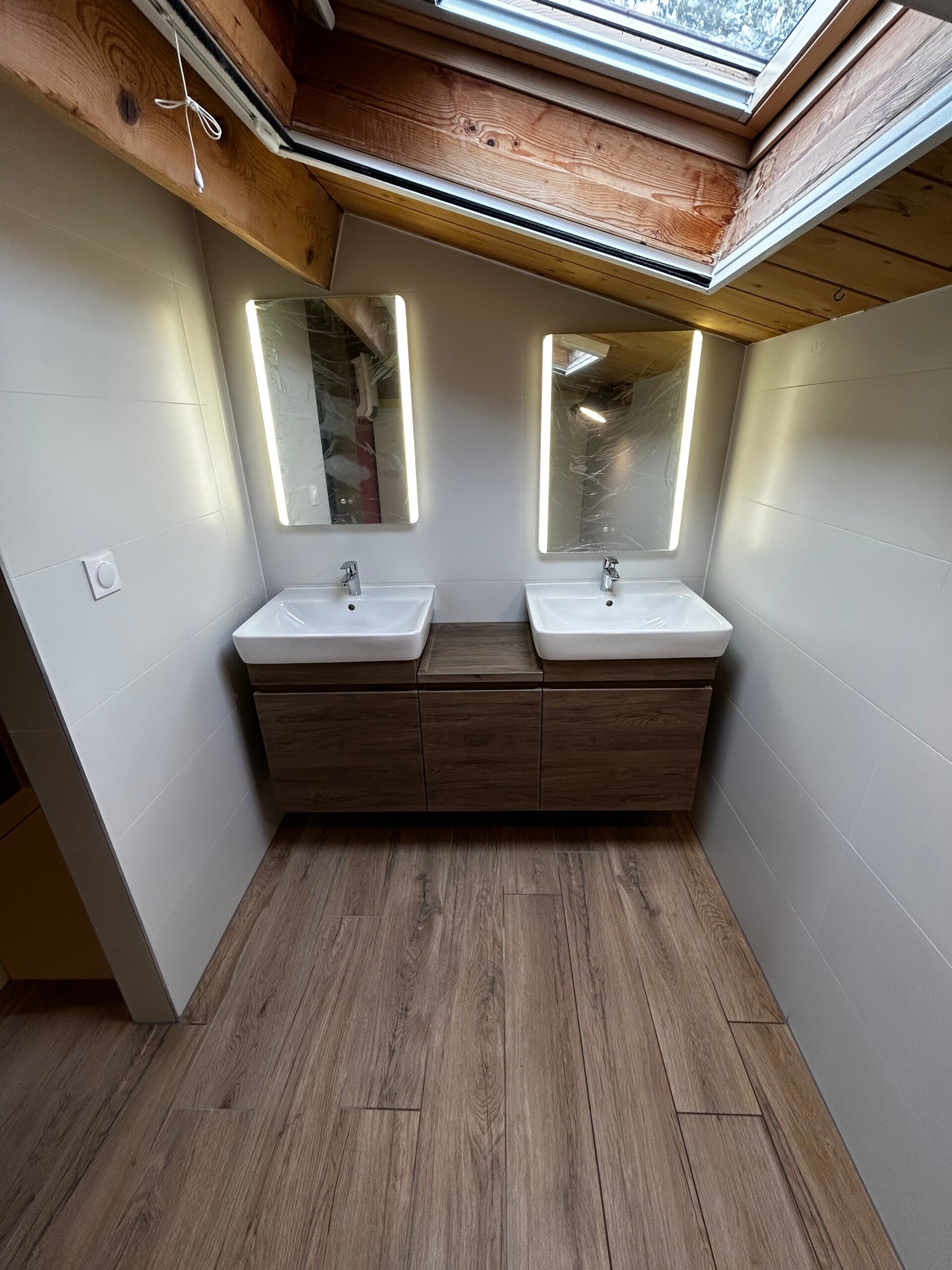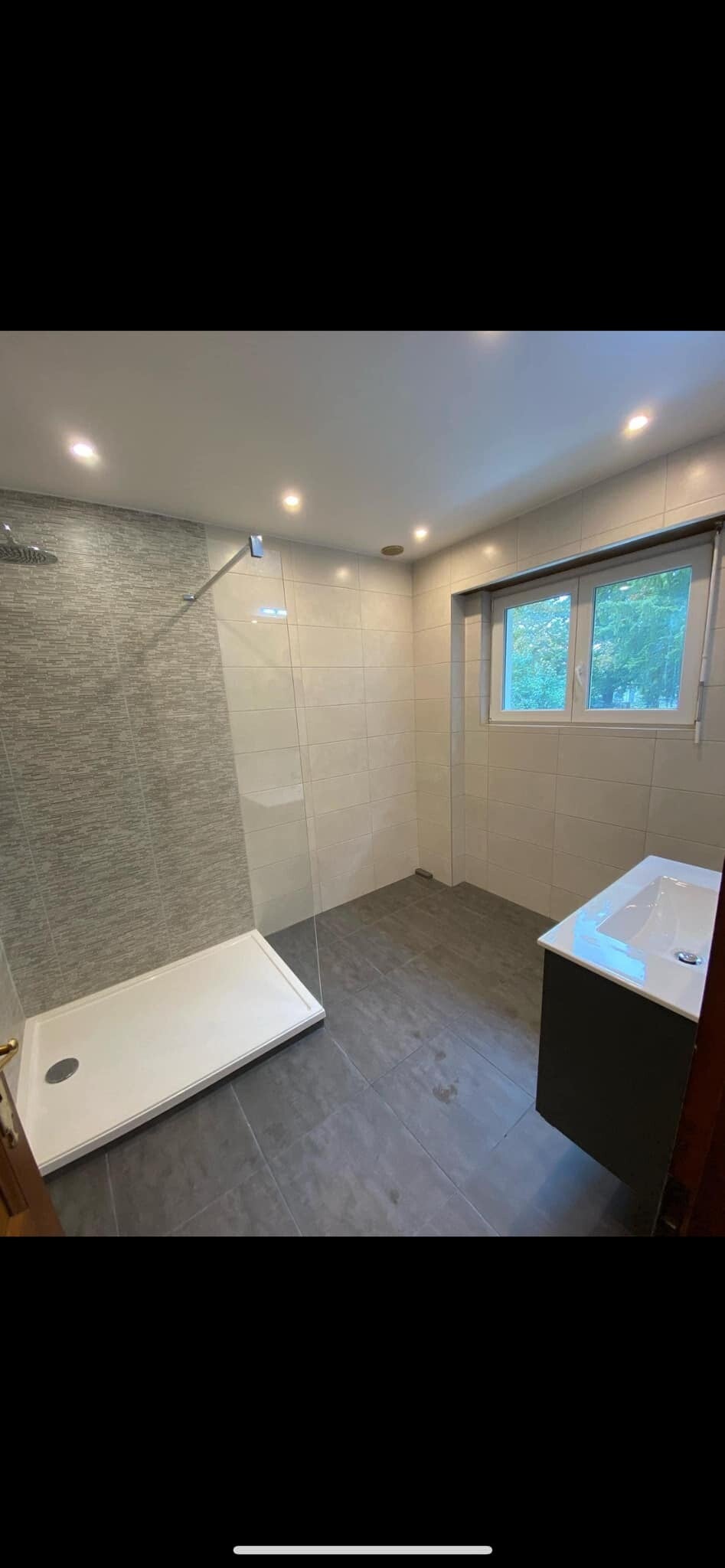 Je suis intervenu dans cette salle de bain qui était équipée d’une baignoire et n’était plus adaptée aux occupants de la maison. J’ai modernisé entièrement l’espace en y intégrant un receveur de douche en résine et en créant un véritable lieu de détente et de bien-être, pour le plus grand bonheur du client.